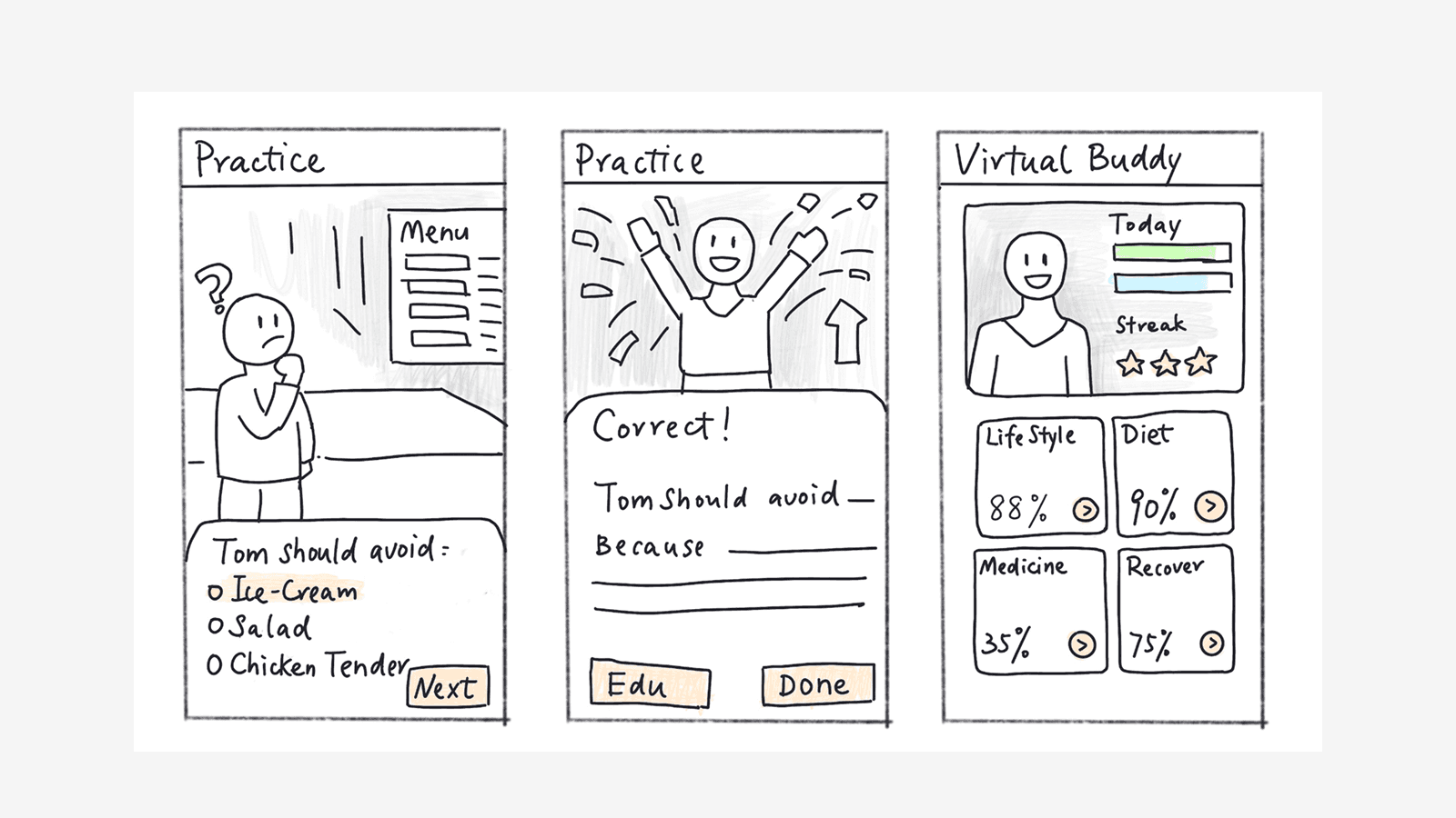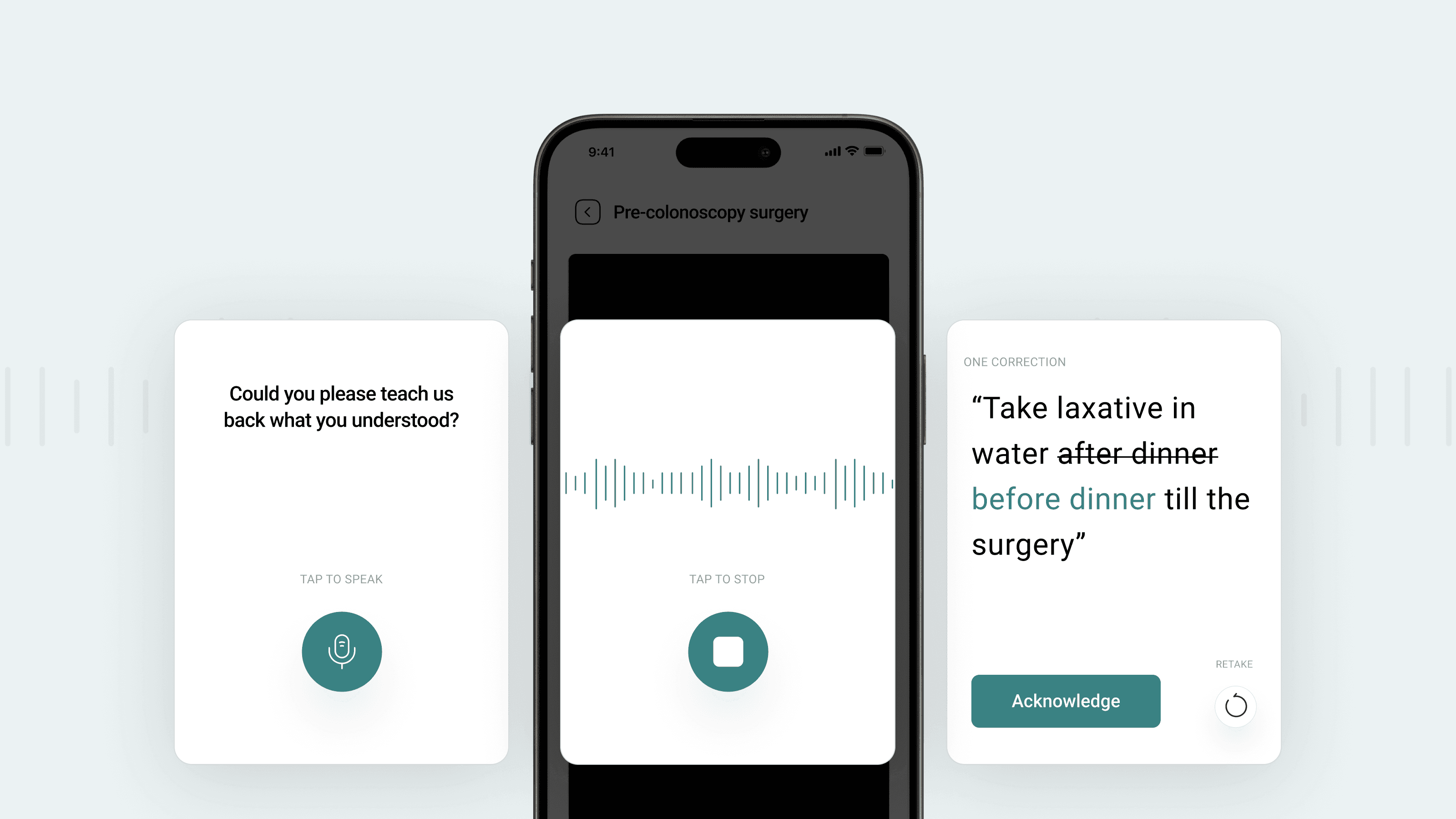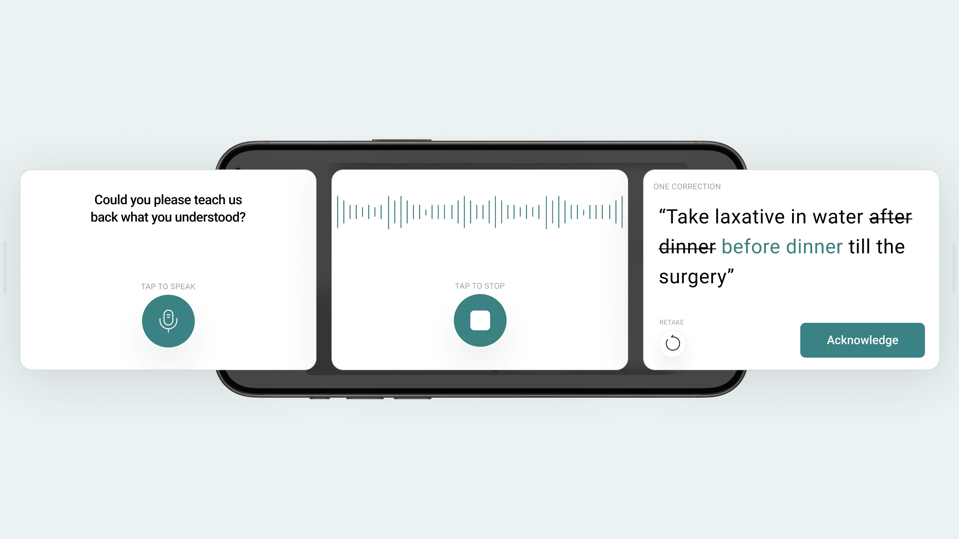 Feedback from testing: Patients already have anxiety, gamification about their medical instructions could backfire. Also, teach back is not a quiz!
